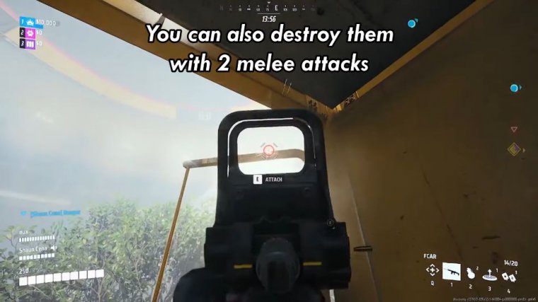 Another thing you should know is that you can cancel your reloads in this game. To do this, simply switch to any other gadget you have equipped, and then switch back to your gun. This will cancel your reloading animation. Moving on, you can either drop stuff at your feet or launch it. You can launch [__] by pressing the same button you use to shoot your weapons, and you can drop [__] at your feet by pressing the same button you use to aim your weapons.