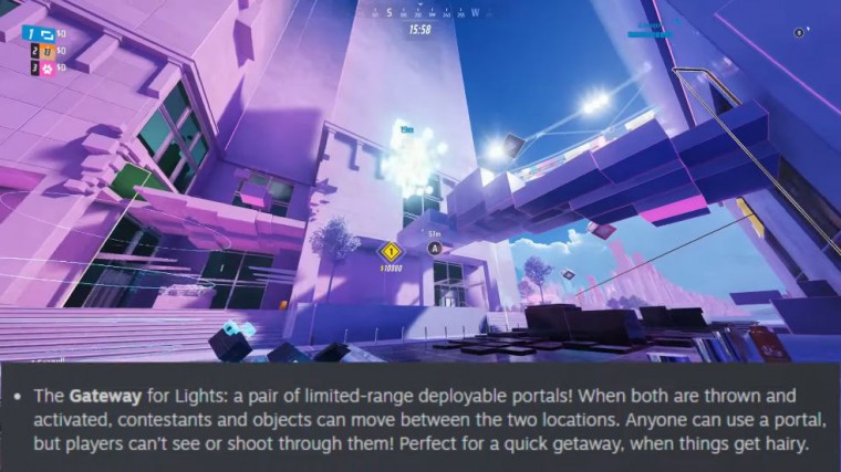Have the gateway for lights; it's a pair of limited-range deployable portals. When both are thrown and activated, contestants and objects can move between the two locations. Anyone can use a portal, but players can't see or shoot through them, perfect for a quick getaway, and when things get hairy, when they mean players can't see or shoot through them, they mean the actual portal itself can't be seen through or be shot through.